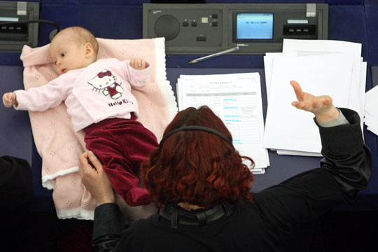 圖:丹麥女議員帶著寶寶參加會議(2)