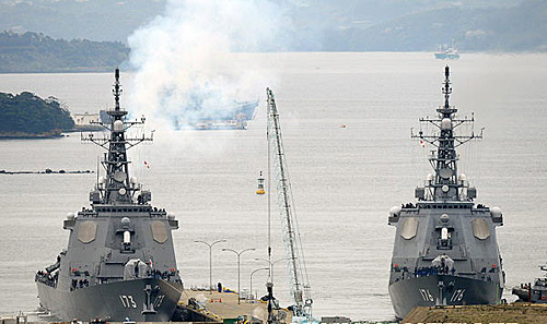 未搭載SM3的宙斯盾艦“霧島”號(hào)離開神奈川縣橫須賀基地!敖饎偂焙汀傍B海”將部署在日本海海域;“霧島”號(hào)則將部署在太平洋海域,負(fù)責(zé)偵察導(dǎo)彈的飛行路徑。這三艘艦只將和部署在日本海附近海域的美軍宙斯盾艦等合作,對朝鮮預(yù)告于4月4日至8日期間進(jìn)行發(fā)射“衛(wèi)星”進(jìn)行戒備。