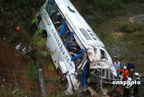 3月27日,一輛大型客車(車牌號為閩CY9537)從江西省萬年開往福建省泉州石獅方向,在南平長(春)深(圳)高速2898公里處(延平區(qū)大橫鎮(zhèn)路段),從右側(cè)方向路邊溝翻至山溝,車輛嚴重毀壞。據(jù)初步了解,該車輛核載45人,車上駕乘人員25人,死亡18人,其中當場死亡17人,在送往醫(yī)院途中死亡1人,死者中男性12名、女性6名。受傷7人分別送往南平第一醫(yī)院(1人)、人民醫(yī)院(1人)、九二醫(yī)院(5人),醫(yī)務人員正全力組織搶救,生命征較穩(wěn)定,暫無生命危險。