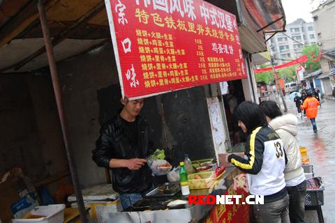 28日下午,毛毛雨。記者到長(zhǎng)沙墮落街一探究竟,在問(wèn)明來(lái)意后,帥哥淡淡一笑稱自己也聽(tīng)房東說(shuō)了紅網(wǎng)論壇上關(guān)于他的事,還告訴他在網(wǎng)上火了,自己感到很意外。帥哥自稱姓包,23歲,來(lái)自河南信陽(yáng)農(nóng)村一單親貧苦家庭。對(duì)于為何年紀(jì)輕輕來(lái)賣燒餅的疑問(wèn),小包介紹說(shuō),這都是生活所迫,沒(méi)有辦法的事,并介紹了一些自己鮮為人知的身世。