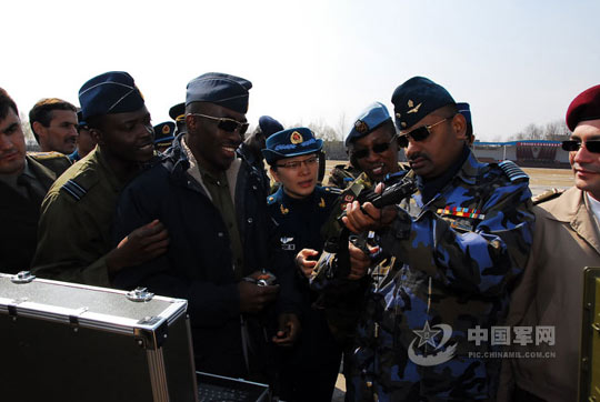 近日,在讀空軍指揮學院的36個友好國家的115名外籍留學學員,來到武警8643部隊參觀見學。武警官兵以高昂的士氣、扎實的作風、過硬的素質為外籍留學學員進行了現(xiàn)場處突課目演示和靜態(tài)裝備展示,讓他們近距離接觸和了解中國武警部隊的訓練、工作和生活情況。這次參觀見學是空軍指揮學院外訓系的一項教學觀摩活動,更是總參、總部為加深了解、促進交流、增進友誼安排的一項重要外事活動。在深入班排,參觀了官兵基礎生活、娛樂設施后,外籍留學學員紛紛表示,中國武警威武的形象和一流的工作標準給他們留下了深刻的印象。 (呂甫琴、朱尚軍 攝影)