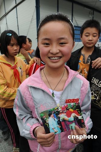 近日,四川德陽(yáng)什邡市洛水抗震小學(xué)六年級(jí)三班小學(xué)生張玉婷手拿去年在5.12地震當(dāng)中自己被救時(shí)的圖片,向同學(xué)們講解自己在地震中的經(jīng)歷和感恩之情。2008年5月12日18時(shí),中國(guó)石化石油工程西南分公司火速組成64名職工參加的抗震突擊隊(duì),到德陽(yáng)什邡市洛水學(xué)校支援搶險(xiǎn)。當(dāng)時(shí)該校200名學(xué)生被壓在教學(xué)樓下,情況十分緊急。搶險(xiǎn)突擊隊(duì)與當(dāng)?shù)厝罕、四川科新公司職工一道,連續(xù)奮戰(zhàn)20余小時(shí),搜救出100余名幸存學(xué)生。中新社發(fā) 胡慶明 攝