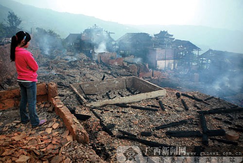 5月10日晚,廣西柳州三江侗族自治縣獨(dú)峒鄉(xiāng)知了村知了屯發(fā)生火災(zāi),68戶(hù)人家的房屋被燒毀,另有69戶(hù)房屋因救火被破拆。據(jù)當(dāng)?shù)孛裾块T(mén)初步統(tǒng)計(jì),直接經(jīng)濟(jì)損失達(dá)130多萬(wàn)元。