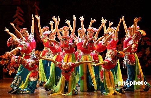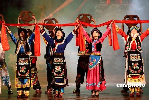 5月12日晚,北川羌族歌舞團(tuán)在北京全國政協(xié)禮堂舉行“大愛無疆”感恩匯報(bào)演出。據(jù)介紹,演出主要是想通過藝術(shù)的形式,展示羌族悠久的歷史和民族文化,表達(dá)北川人民及四川災(zāi)區(qū)人民對全國人民的感恩之情。演出共計(jì)80分鐘,有65名演職人員參與,整場演出采用歌舞、羌笛、口弦、多聲部、情歌對唱等具有羌民族特色的藝術(shù)形式。中新社發(fā) 杜洋 攝