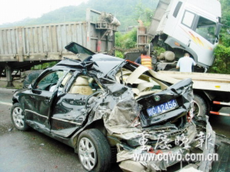 “我看到前面的車時(shí),已來(lái)不及剎車了。”21日下午1時(shí),成都的郭先生駕駛牌照為“川U0195”的加長(zhǎng)貨車往成都方向行駛,此時(shí),天下著傾盆大雨,雨刮剛刮過(guò),擋風(fēng)玻璃又被大雨打濕,視線模糊。車行至成渝高速路永川段出城方向63公里處,剛轉(zhuǎn)過(guò)一個(gè)彎道,前面一排堵塞的車輛突然進(jìn)入他的視線。