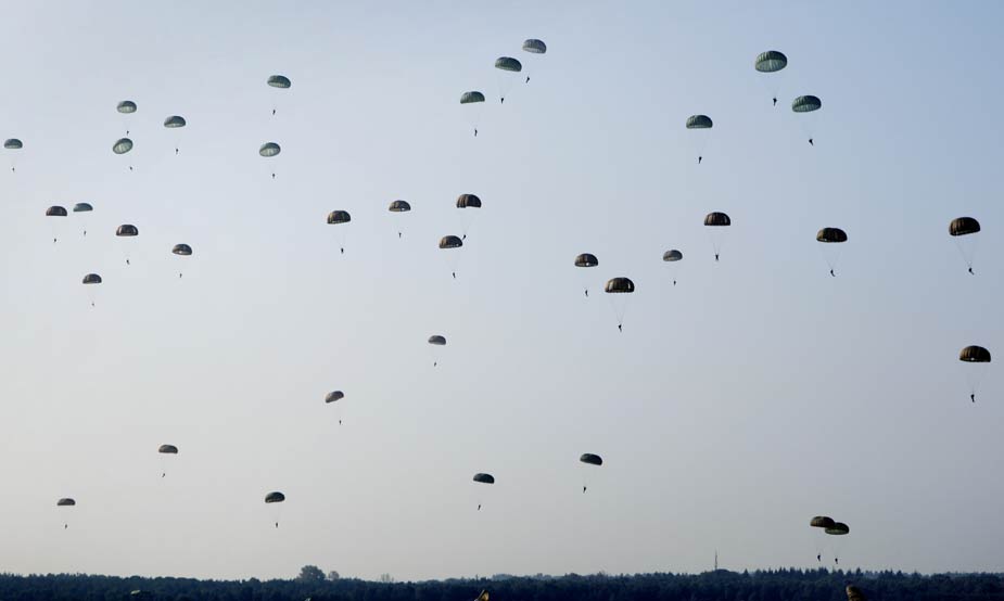 9月19日,英國空降兵在荷蘭埃德附近進(jìn)行傘降表演,紀(jì)念二戰(zhàn)期間盟軍最大規(guī)模的空降作戰(zhàn)——“市場花園”行動(dòng)65周年。