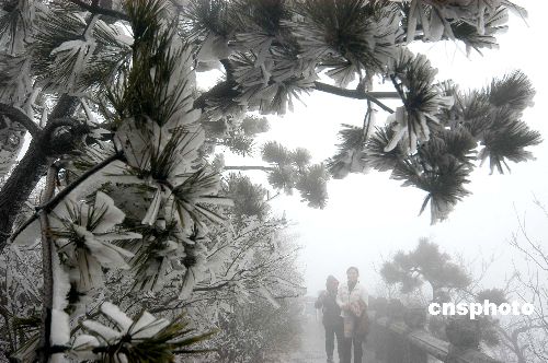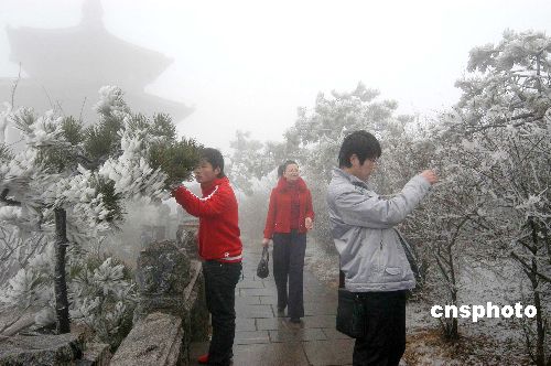 2月3日,江蘇連云港市花果山玉女峰迎來(lái)罕見(jiàn)的霧凇美景,滿山花木、樹(shù)梢凝霜掛雪,晶瑩剔透,吸引眾多游人前來(lái)領(lǐng)略難得一見(jiàn)的霧凇奇景。中新社發(fā) 王春 攝