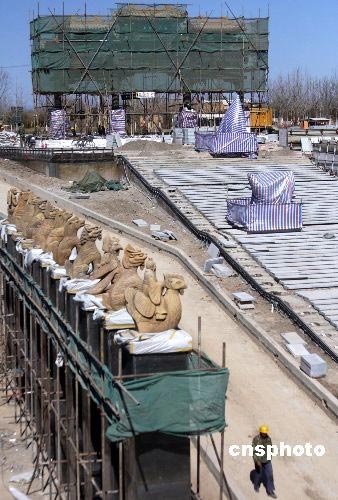 3月13日,極富中國特色的北京奧林匹克公園下沉花園初具規(guī)模。不久,一個(gè)充滿東方建筑韻味的院落組合將展現(xiàn)在人們面前。據(jù)悉,建成后的奧林匹克公園下沉花園將展現(xiàn)七個(gè)中國特色的院落。從紫禁城的紅墻,到北京的四合院,從歷經(jīng)千年的鼓樂,到盛唐的馬球運(yùn)動(dòng),在這里都有體現(xiàn)。中新社發(fā) 吳芒子 攝