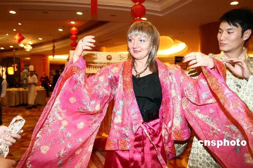 此次年會的承辦方漢衣坊透露,隨著中國民族傳統(tǒng)文化熱的迅速升溫,中國文化已漸漸成為吸引國際眼球的新亮點,此次年會的成功舉辦,就是一個很好的例證。語言不通的俄羅斯賓客對試穿漢服、漢式禮器及中國禮儀文化表現(xiàn)出的濃厚興趣和接受度,足以證明中國文化對境外人士具有巨大的魅力。