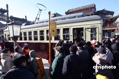 元月一日,京城市民盼望已久的前門鐺鐺車首日開通,乘坐的市民絡繹不絕,紛紛體驗其中的快樂。中新社發(fā) 任海霞 攝