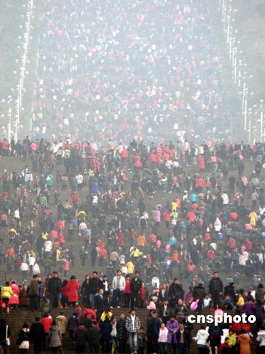 1月26日,重慶市云陽新縣城3萬多市民結(jié)伴登臨磐石城,訪古跡、看新城、賞平湖,以戶外健身活動(dòng)的方式迎接新年。春節(jié)期間,三峽庫區(qū)的移民大縣云陽天氣晴朗,市民們紛紛走出戶外,廣場、公園、張飛廟、磐石城等風(fēng)景區(qū)處處洋溢節(jié)日氣氛,大量游客和市民群眾在休閑中以各種不同方式歡快過節(jié)。中新社發(fā) 饒國君 攝