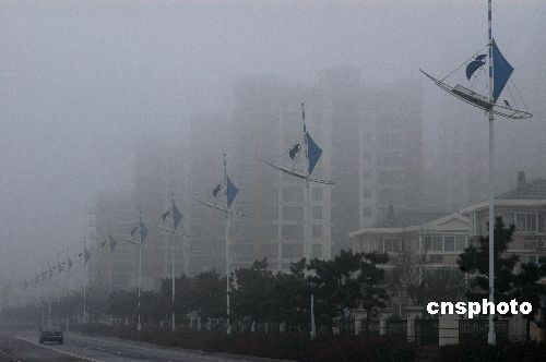 2月2日,江蘇連云港大部分地區(qū)遭遇持續(xù)大霧天氣,城區(qū)大霧彌漫,能見度較低,最低能見度不足50米,境內(nèi)多條高速公路封閉,給當?shù)厥忻癯鲂屑敖煌ㄟ\輸帶來影響。當?shù)貧庀蟛块T發(fā)布了大霧黃色預警,交通安全部門提醒旅客要注意出行安全。中新社發(fā) 王春 攝