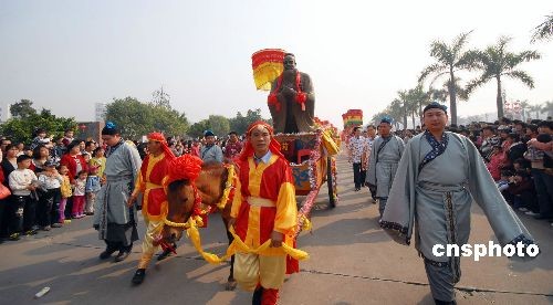 2月9日,廣東德慶依古制進(jìn)行公祭、民祭儀式,萬(wàn)人肅穆,向孔子圣像朝拜,為該縣鬧元宵活動(dòng)添上濃厚的儒家文化韻味。中新社發(fā) 談細(xì)育 攝