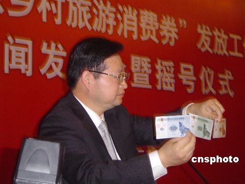 2月16日,南京市向城區(qū)居民發(fā)放2000萬元鄉(xiāng)村旅游消費(fèi)券以帶動(dòng)鄉(xiāng)村游,在市民代表和公證部門監(jiān)督下進(jìn)行公開搖號(hào),搖中的20萬戶居民每戶獲得100元旅游消費(fèi)券,可在指定的該市37個(gè)鄉(xiāng)村旅游點(diǎn)抵扣相應(yīng)消費(fèi)費(fèi)用。圖為搖號(hào)儀式上市旅游局官員展示旅游消費(fèi)券樣式。中新社發(fā) 王國安 攝