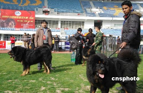 2月21日,由中國(guó)工作犬管理協(xié)會(huì)主辦的2009年中國(guó)藏獒展評(píng)大賽在南通體育會(huì)展中心開展。來自全國(guó)各地兩千余只藏獒參加了比賽,其中被譽(yù)為“江南獒王”來自蘇州海納苑藏獒基地的炭火也參加了比賽。據(jù)了解,主辦方舉辦此項(xiàng)比賽旨在通過展評(píng)大賽保護(hù)中國(guó)藏獒資源,提倡文明養(yǎng)犬,規(guī)范養(yǎng)犬。中新社發(fā) 朱子寒 攝