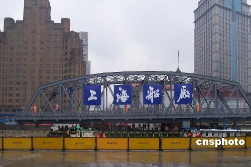2月25日,經(jīng)過一年修繕的上海外白渡橋回到它已安然矗立百年的蘇州河河口,開始復位工程。中新社發(fā) 周東潮 攝