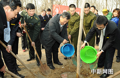 在毛主席為雷鋒同志題詞46周年之際,雷鋒生前戰(zhàn)友喬安山來到河北滄州,和“騰達(dá)雷鋒志愿者”們一起在人民公園栽下愛心樹。他告誡志愿者說:“綠化祖國(guó)需要每一個(gè)人盡一份力,今天在這里種下綠色,希望雷鋒精神永遠(yuǎn)在這片土地上扎根。 王少華 攝