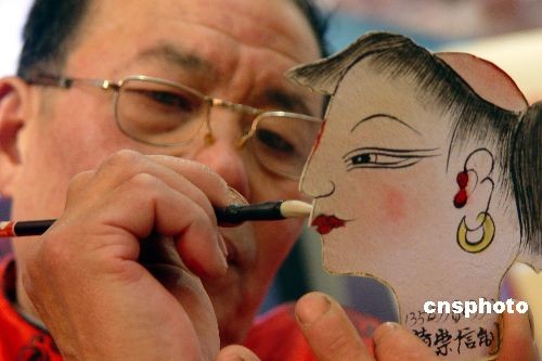 3月2日,一位來自河南羅山的民間藝人現(xiàn)場(chǎng)制作并“秀”皮影戲道具,向觀眾推介河南。當(dāng)日,設(shè)在北京全國農(nóng)業(yè)展覽館的“河南農(nóng)民工風(fēng)采展”揭開帷幕。中新社發(fā) 李志全 攝