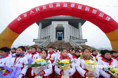 3月5日,當(dāng)日是周恩來誕辰111周年紀(jì)念日,周恩來故鄉(xiāng)——江蘇省淮安市楚州區(qū)數(shù)千社會各界人士齊聚周恩來紀(jì)念館廣場,冒著綿綿細雨,緬懷敬愛的周總理。中新社發(fā) 李正林 攝