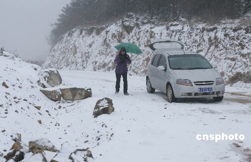 3月7日下午,浙江省天臺(tái)縣千米高山的蒼山頂下起大雪。據(jù)當(dāng)?shù)貧庀蟛块T介紹,這個(gè)季節(jié)下雪在當(dāng)?shù)夭⒉欢嘁?jiàn)。中新社發(fā) 丁必裕 攝