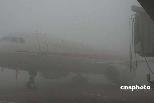 3月9日晨,成都雙流國(guó)際機(jī)場(chǎng)遭遇春季首場(chǎng)大霧天氣襲擊,為此雙流機(jī)場(chǎng)發(fā)布了三級(jí)預(yù)警信號(hào),機(jī)場(chǎng)被迫關(guān)閉5個(gè)多小時(shí),直接造成100余個(gè)進(jìn)出港航班延誤,致使近萬名出港旅客受阻于機(jī)場(chǎng),不能按時(shí)飛往目的地。中新社發(fā) 呂俊明 攝