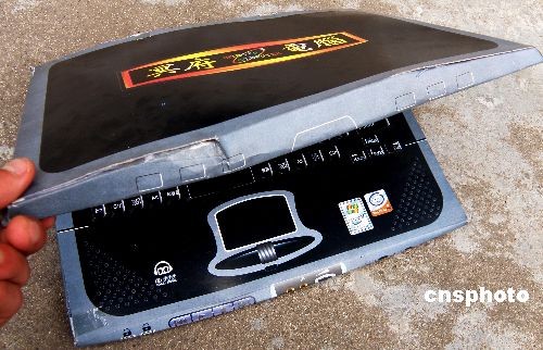 2009年3月18日,湖北宜昌市某祭祀品批發(fā)市場(chǎng)上出售的“冥府筆記本電腦”。這種“冥府電腦”采用硬紙板材料制作,上面印有精美的圖案標(biāo)志。據(jù)商家披露,農(nóng)歷清明節(jié)臨近,有很多市民購(gòu)買這種售價(jià)10元一臺(tái)的“冥府電腦”去祭祀逝去的親朋好友。中新社發(fā) 劉君鳳 攝