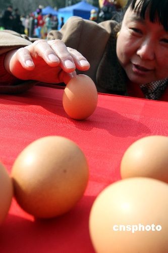 三月二十日,是中國(guó)二十四節(jié)氣中的春分。北京春分朝陽(yáng)民俗文化藝術(shù)節(jié)閃亮登場(chǎng),民眾紛紛“豎”雞蛋迎春分!按悍值,蛋兒俏”,中國(guó)春分時(shí)節(jié)的“豎蛋游戲”,目前已成為世界性的游戲。中新社發(fā) 任海霞 攝