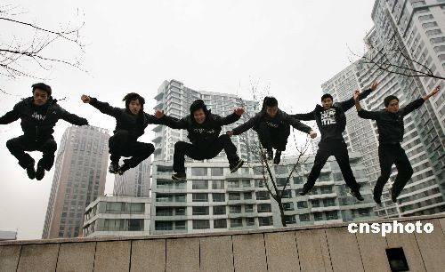 3月21日,一只名為“城市猴子”的北京跑酷隊在城市的高樓林立中訓(xùn)練。跑酷運動誕生于上世紀80年代的法國,意為把整個城市當(dāng)作一個大訓(xùn)練場,一切圍墻、屋頂都成為可以攀爬、穿越的對象,是在都市青年中很流行的時尚運動。此項運動自三年前傳入中國,深受酷愛極限運動的青少年喜愛。據(jù)悉中國首屆正規(guī)跑酷比賽將于本月底在北京舉行。中新社發(fā) 富田 攝
