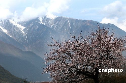 3月23日,西藏川藏公路旁成片的桃花盛開(kāi),在雪山的映襯下分外美麗。中新社發(fā) 杜洋 攝