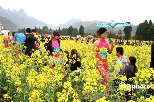 3月22日,浙江省仙居縣10萬(wàn)畝油菜花田陸續(xù)開(kāi)放,成片的金黃色油菜花吸引了眾多中外游客踏春賞花。中新社發(fā) 金煒民 攝