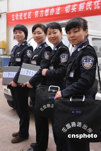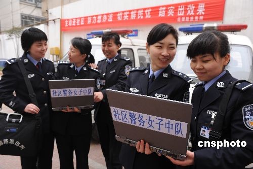 3月24日,鄭州市公安局金水分局花園路派出所結(jié)合轄區(qū)實際,以及青年女民警溫和細(xì)膩親和力強便于開展社區(qū)警務(wù)的特點和優(yōu)勢,由鄭州市公安局金水分局花園路派出所11名社區(qū)女民警組成的河南公安首支“社區(qū)警務(wù)女子中隊”正式上崗。據(jù)了解,該“社區(qū)警務(wù)女子中隊”采用分片聯(lián)勤工作機制,既有各自的社區(qū)警務(wù)責(zé)任分工,又有相互合作聯(lián)勤協(xié)調(diào),優(yōu)勢互補。 中新社發(fā) 劉書亭 攝