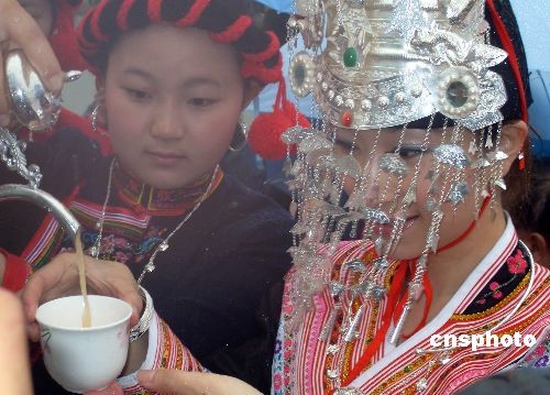 3月27日農(nóng)歷三月初三,是畬族的傳統(tǒng)節(jié)日“三月三”,又稱“烏飯節(jié)”。迄今已有近四百多年歷史的福建寧德市蕉城區(qū)金涵畬族鄉(xiāng)上金貝村舉辦了隆重的“三月三歌會”,吸引眾多當(dāng)?shù)禺屆窈瓦h(yuǎn)近游客前來踏青賞“歌”。 圖為畬族女子獨(dú)特的“鳳凰裝”和“鳳凰發(fā)式”,造型美觀,色彩斑斕,是歌會上一道特別亮麗的風(fēng)景。中新社發(fā) 徐釗 攝