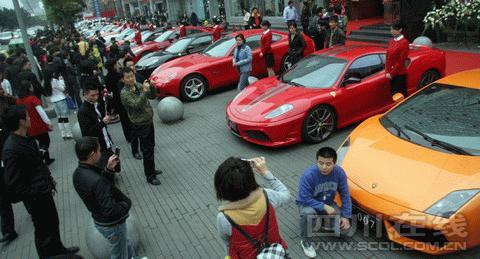 車隊在一家新開張的酒樓門前停下,“貝克漢姆要到這家酒樓助興?”眾人一陣疑惑。車內(nèi)人逐一走出,但并沒有偶像小貝出現(xiàn)。這時,有人理智地分析:“小貝在備戰(zhàn)世界杯預選賽,咋可能來成都嘛。即使他不來,能看到這些車也不容易了!”“不是貝克漢姆來了,是這家酒樓開張,這些名車車主都是過來助興的。”一位工作人員從酒樓走出來,熱情地給大伙當起了“解說員”。他說,這個名車車隊由25輛車組成,其中蘭博基尼有4輛、法拉利9輛、保時捷4輛、奔馳4輛、勞斯萊斯2輛、GT3RS一輛、奎蛇一輛。奎蛇屬于限量版,全亞洲僅此一臺;GT3RS跑車,全國也僅此一臺;運動型的法拉利SC30,成都只有兩臺。這些車平均價格達到300萬元以上,25輛車的總價值超過一億元。