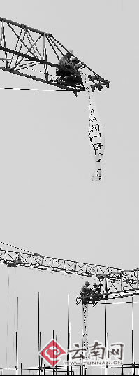 圍在下面的討薪工人們反映說,最根本的原因是施工方云南某建筑集團公司第一分公司不付清他們工錢。爬到塔吊上的7名農(nóng)民工都是工地帶班的,他們手下所帶的農(nóng)民工少則幾十人,多則上百人。因為沒有發(fā)工錢給大家,他們怕大家找他們要錢,怕大家動手打他們,他們才爬塔吊討工錢的。
