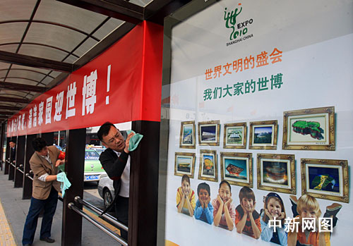 在虹橋機場候機樓前廣場,志愿者們擼袖揮汗,認真清掃地面、擦拭圍欄,以擦亮城市窗口;在虹橋機場925公交車站、第一停車場等區(qū)域,60多名南京路上好八連戰(zhàn)士以及武警部隊官兵不認真進行衛(wèi)生死角整治行動;而在虹橋機場第二停車場,身著綠色志愿者馬甲的義務監(jiān)督員向過往旅客和路人進行環(huán)境衛(wèi)生宣傳教育,勸阻和制止亂扔垃圾雜物的不文明行為。