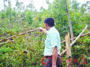 昨日(16日)凌晨2時許,一股強(qiáng)勁的龍卷風(fēng)卷著冰雹突襲了臺山市廣海鎮(zhèn)中興村委會一帶。所到之處損毀嚴(yán)重,數(shù)千畝山林遭腰斬,村中40多畝的冬瓜棚全部坍塌,部分瓦房被龍卷風(fēng)卷著的冰雹“開”了天窗。