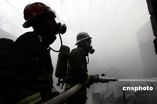 4月20日5時(shí)34分,安徽省濉溪縣虎山路東側(cè)口子批發(fā)市場(chǎng)附近一漁畜具倉庫發(fā)生火災(zāi)。淮北市消防支隊(duì)先后調(diào)動(dòng)3個(gè)中隊(duì)9輛消防水罐車、2輛消防指揮車, 80名官兵前往火場(chǎng)滅火。明火于早晨8時(shí)被撲滅。此次火災(zāi)過火面積150平方米左右,無人員傷亡。在撲救過程中,共搶救危險(xiǎn)品8桶桐油、6罐氧氣瓶,疏散被困人員近200人。目前火災(zāi)損失和起火原因正在進(jìn)一步調(diào)查中。中新社發(fā) 萬善朝 攝