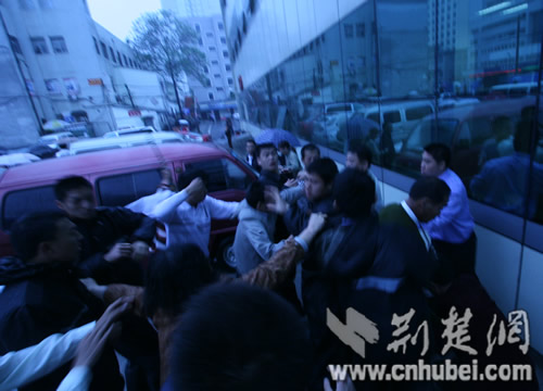 23日下午,湖北省婦幼保健醫(yī)院門前,發(fā)生一起流血事件:多名患者家屬在與醫(yī)院因醫(yī)療事故協(xié)商發(fā)生糾紛時,醫(yī)院一伙保安竟用“甩鞭”和鋼管等將患者家屬打倒,造成多人受傷。