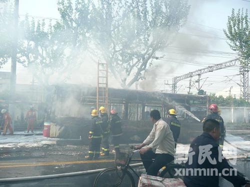 記者了解到,事發(fā)時,這輛公交車正沿交通路由西向東行駛近新泉路,乘坐在車后部的乘客發(fā)現(xiàn)車廂內(nèi)有嗆人的煙霧,立即招呼司機。司機當即停車組織乘客撤離,隨即便展開撲救。不料火勢迅速蔓延,不一會公交車已陷入一片火海。