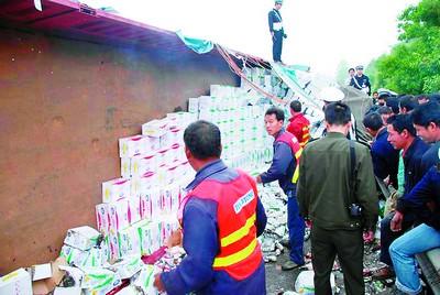 昨日(2日)上午8時(shí),京珠高速臨長(zhǎng)段由北往南方向125公里處,一輛裝滿牛奶的大貨車發(fā)生側(cè)翻,5000件牛奶傾覆一地。高速交警臨長(zhǎng)大隊(duì)水渡河中隊(duì)接警后出動(dòng)三個(gè)巡邏組,10余名民警趕赴現(xiàn)場(chǎng)維持秩序。