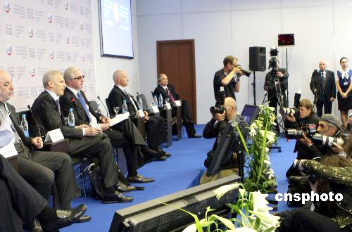 6月4日,“2009圣彼得堡國際經(jīng)濟(jì)論壇”召開,俄羅斯與美國就兩國關(guān)系“重啟”條件下,如何加強(qiáng)兩國經(jīng)濟(jì)領(lǐng)域合作、以及俄羅斯加入WTO等問題展開對話。俄羅斯工業(yè)與企業(yè)家聯(lián)合會(huì)主席紹欣與美國貿(mào)易代表柯克等眾多俄美工商企業(yè)界巨頭與會(huì)。 中新社發(fā) 田冰 攝
