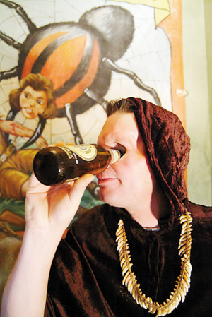 利用空空的左眼窩,南瓜頭可以直接把啤酒瓶口對(duì)準(zhǔn)窟窿開懷暢飲,抽煙時(shí)眼眶里吞云吐霧讓人以為他燒著了,更厲害的是南瓜頭時(shí)不時(shí)還可以從左眼眶里吐舌頭逗大家開心。憑借這些強(qiáng)悍得無(wú)敵的本領(lǐng),南瓜頭已成為美國(guó)芝加哥格雷姆兄弟雜耍公司的臺(tái)柱。