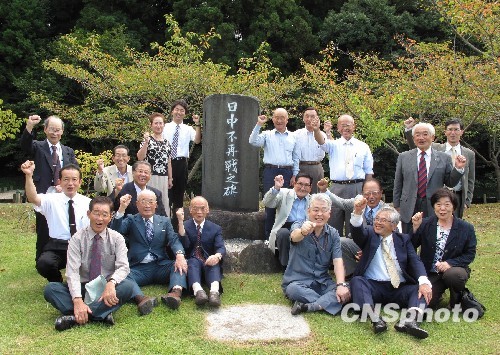 9月8日,由日本茨城縣“日中不再戰(zhàn)之碑”保存顯彰會(huì)主辦的慶祝新中國(guó)成立60周年紀(jì)念演講會(huì)在水戶(hù)市舉行。日中兩國(guó)友人50多人與會(huì),共同回顧日中友好交流的歷史,祝福中國(guó)更加繁榮富強(qiáng)。圖為演講會(huì)結(jié)束后,部分日中友人來(lái)到日中不再戰(zhàn)之碑前合影留念。中新社發(fā) 段躍中 攝