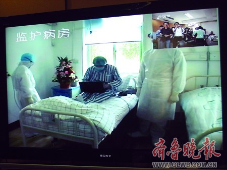 在電視屏幕上,記者看到,身著病號服的小呂在醫(yī)生陪伴下,半靠在病床上,沒有輸液。雖然戴著口罩和隔離帽,仍能看出小呂精神狀態(tài)很好,床頭上放著筆記本電腦和手機(jī)。病房內(nèi)有兩個(gè)醫(yī)務(wù)工作人員陪著他。