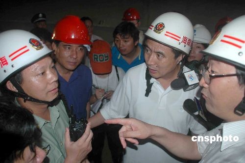 6月6日中午,海南省省長(zhǎng)羅保銘來(lái)到三亞隧道坍塌事故現(xiàn)場(chǎng)指導(dǎo)營(yíng)救工作。6月4日23時(shí)許,正在施工的三亞繞城高速公路迎賓隧道發(fā)生坍塌事故,8名施工人員被困。目前,營(yíng)救工作在繼續(xù),截止當(dāng)日中午十二時(shí),尚無(wú)被困人員被救出。羅保銘表示,將盡全力營(yíng)救被困人員。中新社發(fā) 尹海明 攝