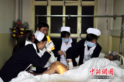 中新網(wǎng)4月16日電 4月16日凌晨2時(shí)10分,第四批青海玉樹縣地震災(zāi)區(qū)傷員抵達(dá)蘭州機(jī)場。至此,蘭州共接收玉樹縣地震災(zāi)區(qū)傷員達(dá)119名,幾乎全部為重癥,被分配到甘肅省人民醫(yī)院、蘭州大學(xué)的附屬醫(yī)院等5家醫(yī)院治療。目前,院方已經(jīng)為傷者開展手術(shù),全力以赴搶救治療。