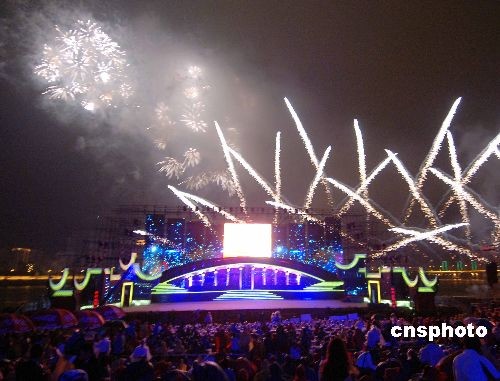5月17日晚,中國福州第十一屆海峽兩岸經(jīng)貿(mào)交易會(huì)開幕式大型文藝焰火晚會(huì)在福州閩江公園望龍園江濱大舞臺(tái)舉行。整臺(tái)晚會(huì)突出“海峽緣·故鄉(xiāng)情”主題,將獨(dú)具民俗風(fēng)情的歌舞表演和璀璨奪目的焰火完美地融合在一起,來自海內(nèi)外嘉賓及觀眾3000多人冒雨觀看了該晚會(huì)。中新社發(fā) 劉可耕 攝