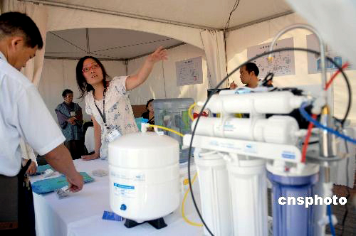 6月3日,以“節(jié)能減排 和諧發(fā)展”為主題的第十一屆中國(guó)國(guó)際環(huán)保展在北京國(guó)展中心開(kāi)幕。近600家中外企業(yè)帶來(lái)最新的環(huán)保技術(shù)裝備參加了本次展會(huì)。各種污染防治技術(shù)、清潔能源及資源綜合利用仍是本次展會(huì)眾人討論的熱點(diǎn)話題。中新社發(fā) 遠(yuǎn)舟 攝