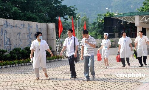6月7日,深圳深大附中高考考場(chǎng),為嚴(yán)防甲型H1N1疫情,深圳市南山區(qū)人民醫(yī)院醫(yī)務(wù)小組進(jìn)駐該高考現(xiàn)場(chǎng)。當(dāng)天下午,廣東省衛(wèi)生廳、深圳市衛(wèi)生局等相繼派出檢查組,對(duì)醫(yī)療服務(wù)、考生食堂衛(wèi)生等情況進(jìn)行檢查。中新社發(fā) 呂雪良 攝