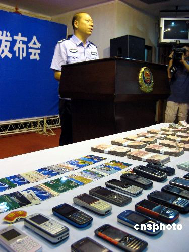 6月9日,福州市公安局舉行新聞發(fā)布會(huì)披露,福州警方奔赴廣東、海南、遼寧3省、連續(xù)奮戰(zhàn)9天,于6月3日摧毀了跨國(guó)虛假信息詐騙團(tuán)伙,抓獲洪某立等8名成員,破獲涉案金額達(dá)240萬(wàn)元的特大虛假信息詐騙案,追繳贓款人民幣178萬(wàn)元,凍結(jié)贓款29.9萬(wàn)元,繳獲小轎車(chē)、手機(jī)等作案工具。中新社發(fā) 張彩林 攝
